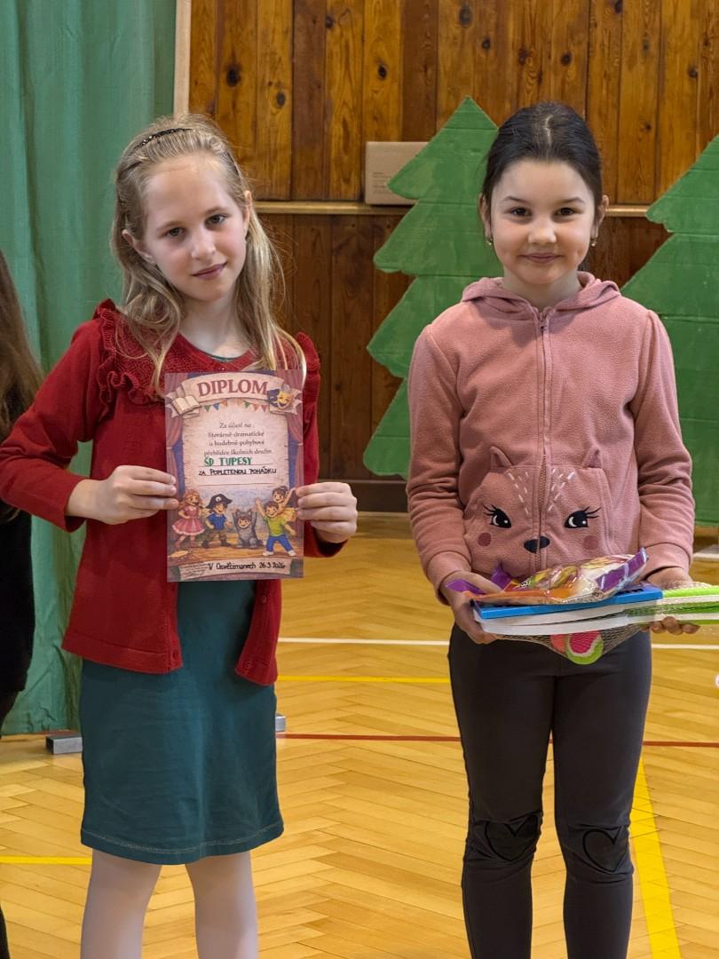 Naši družinu skvěle reprezentovaly Maruška Trubačíková a Sára Pijáčková se scénkou „Popletená pohádka“. Svým vystoupením zaujaly publikum i porotu a přispěly k příjemné atmosféře celé akce.
