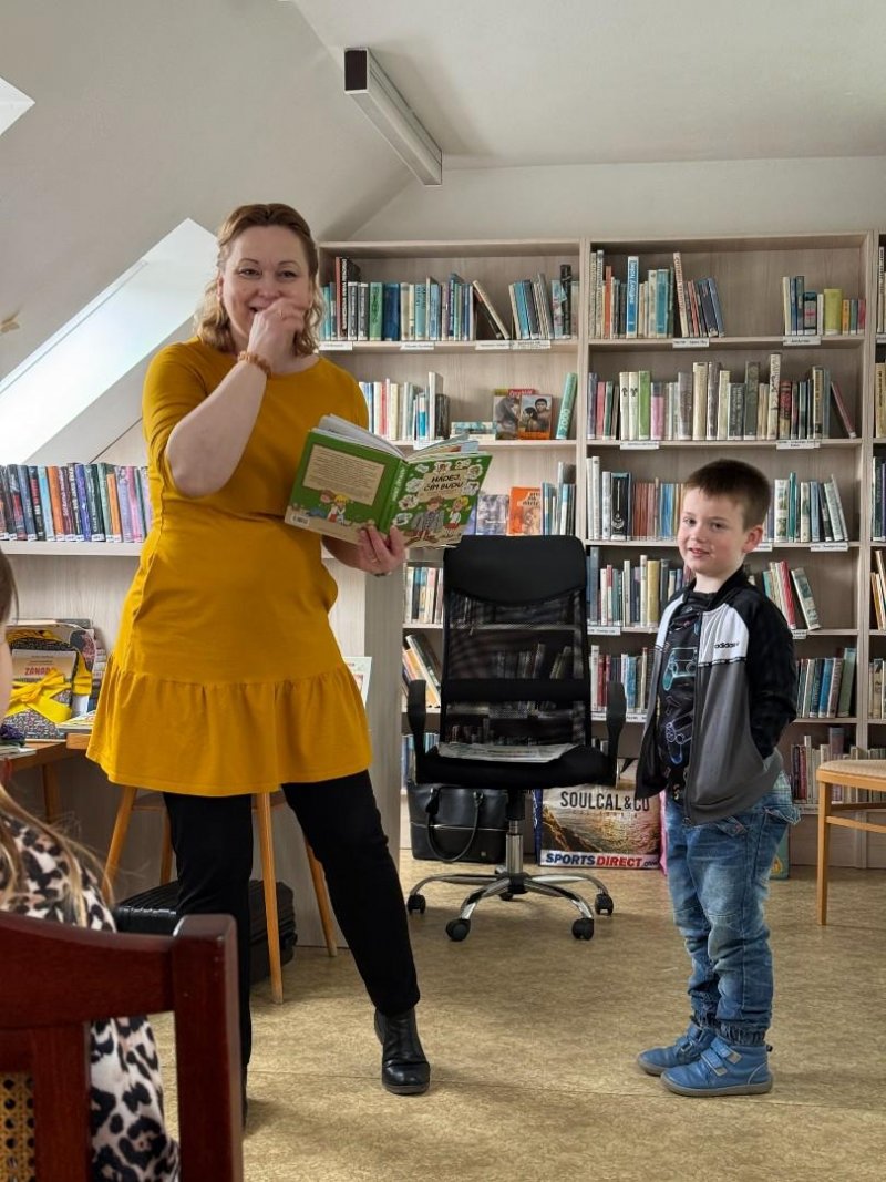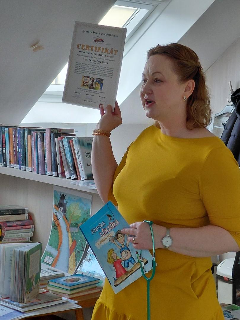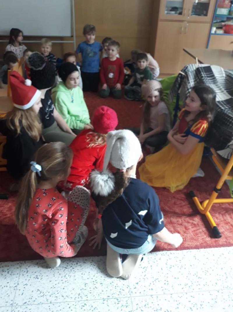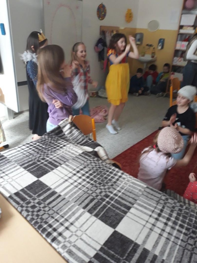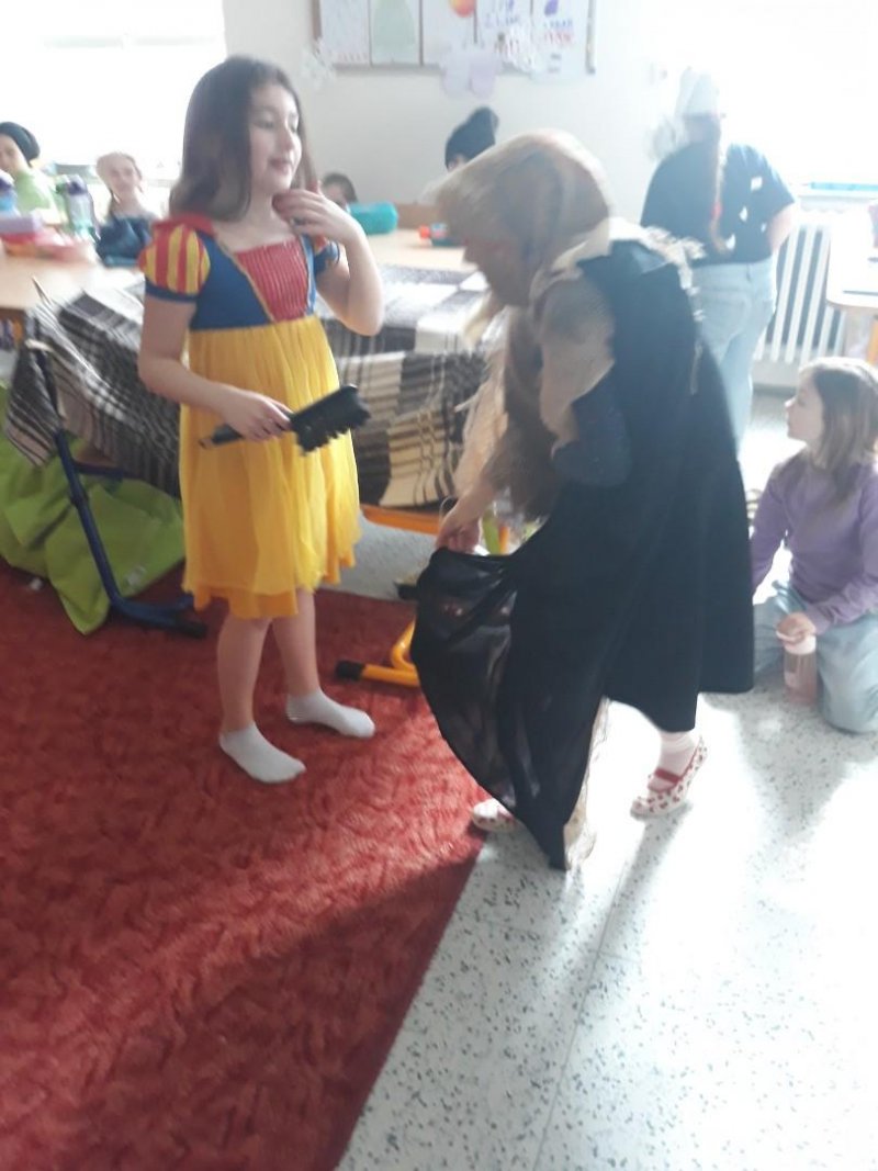 V úterý 24. února se v naší družině potkala literatura s divadlem. Prožili jsme odpoledne plné příběhů, a to jak těch v knížkách, tak těch na divadelních prknech. Mladší žáci z 1. a 2. oddělení přivítali vzácnou návštěvu – oblíbenou spisovatelku Zuzanu Pospíšilovou. Paní spisovatelka u nás nebyla poprvé a naše děti její tvorbu velmi dobře znají. Její knížky čteme společně pravidelně a mají čestné místo v naší družinové knihovničce. Beseda byla nesmírně poutavá. Děti se živě zajímaly o konkrétní tituly a dozvěděly se jednu fascinující zajímavost: paní Pospíšilová je držitelkou českého rekordu za nejvyšší počet vydaných knih od jedné autorky. Aktuálně jich má na kontě okolo 300! A některé z nich si děti přinesly také z domu, aby jim do nich paní spisovatelka vepsala osobní vzkaz s podpisem. Zájemci si mohli knihy také objednat předem a převzít si je i s věnováním přímo od autorky v den besedy. A o nový titul Strašidelný dům se rozrostla také naše družinová knihovnička, Tuto knížku jsme totiž dostali darem i s věnováním přímo od autorky. Zatímco se mladší děti věnovaly knihám, starší žáci ze 3. oddělení se proměnili v herce. Děvčata si totiž ve vlastní režii připravila divadelní představení Sněhurka a sedm trpaslíků. Protože by byla škoda nechat si takový kus jen pro sebe, pozvali mladí divadelníci na premiéru hosty – děti z naší mateřské školy a také některé zaměstnance školy. Představení mělo úspěch a sklidilo zasloužený potlesk.