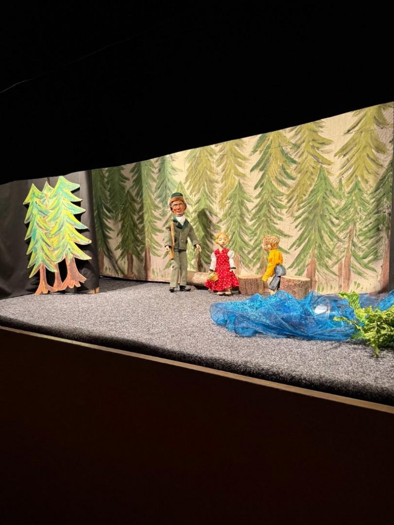 Během přestávek na výměnu kulis se o nás postarala milá paní z divadla, která si s dětmi zacvičila, aby se nám čekání na pokračování představení zkrátilo. Děti si nejen užily pohádku