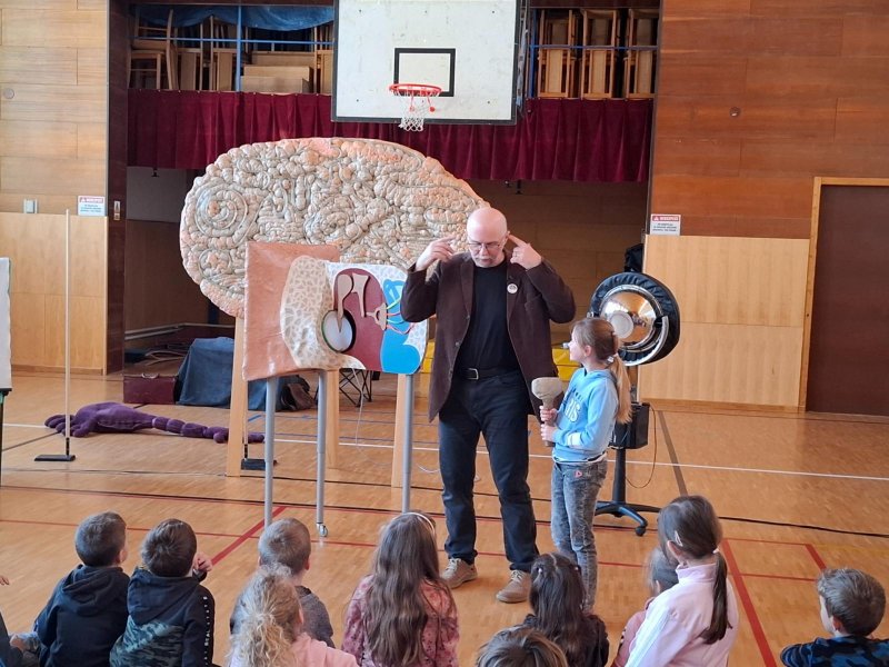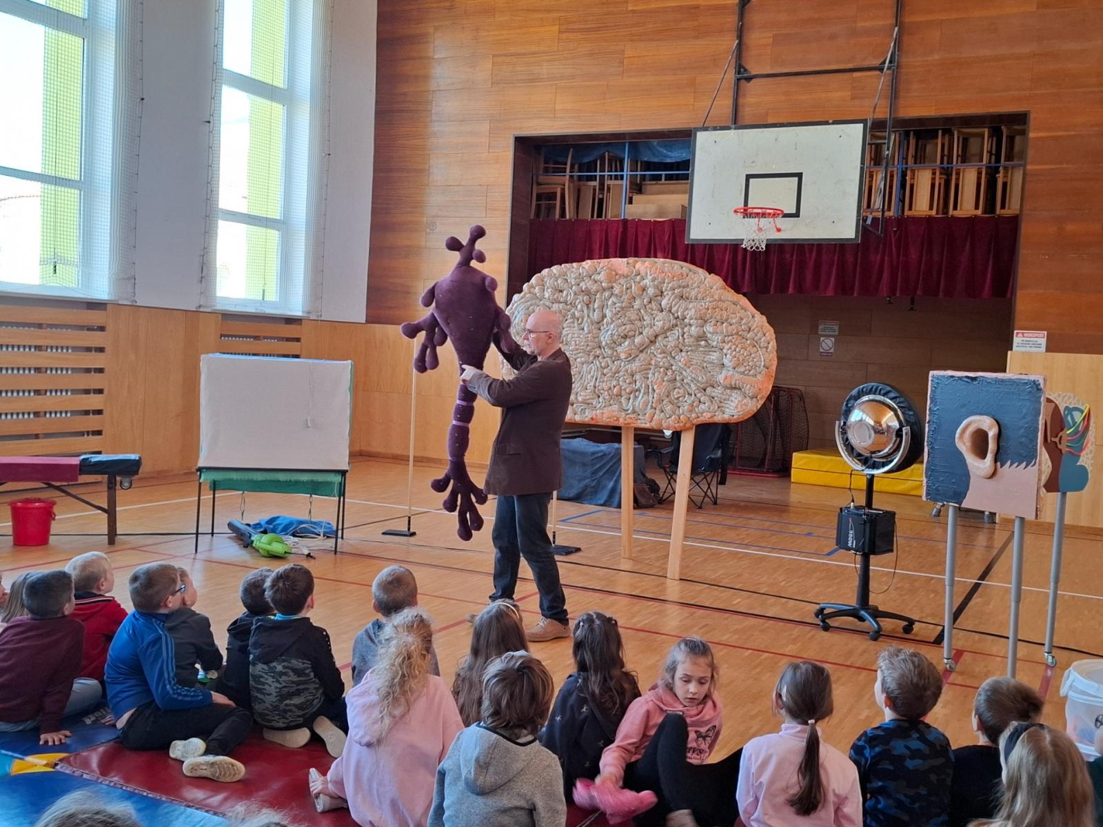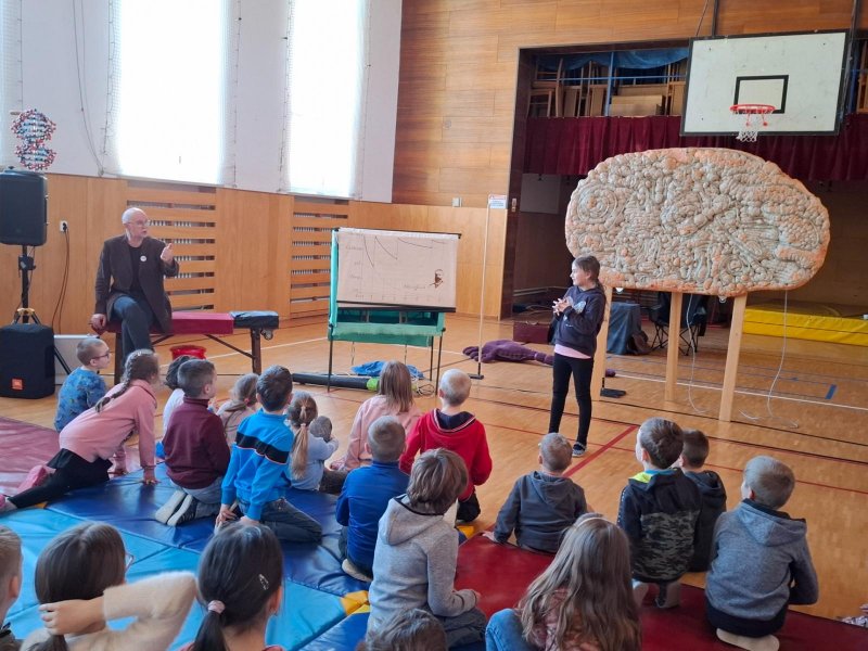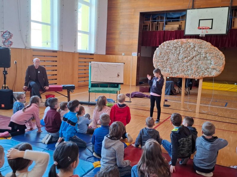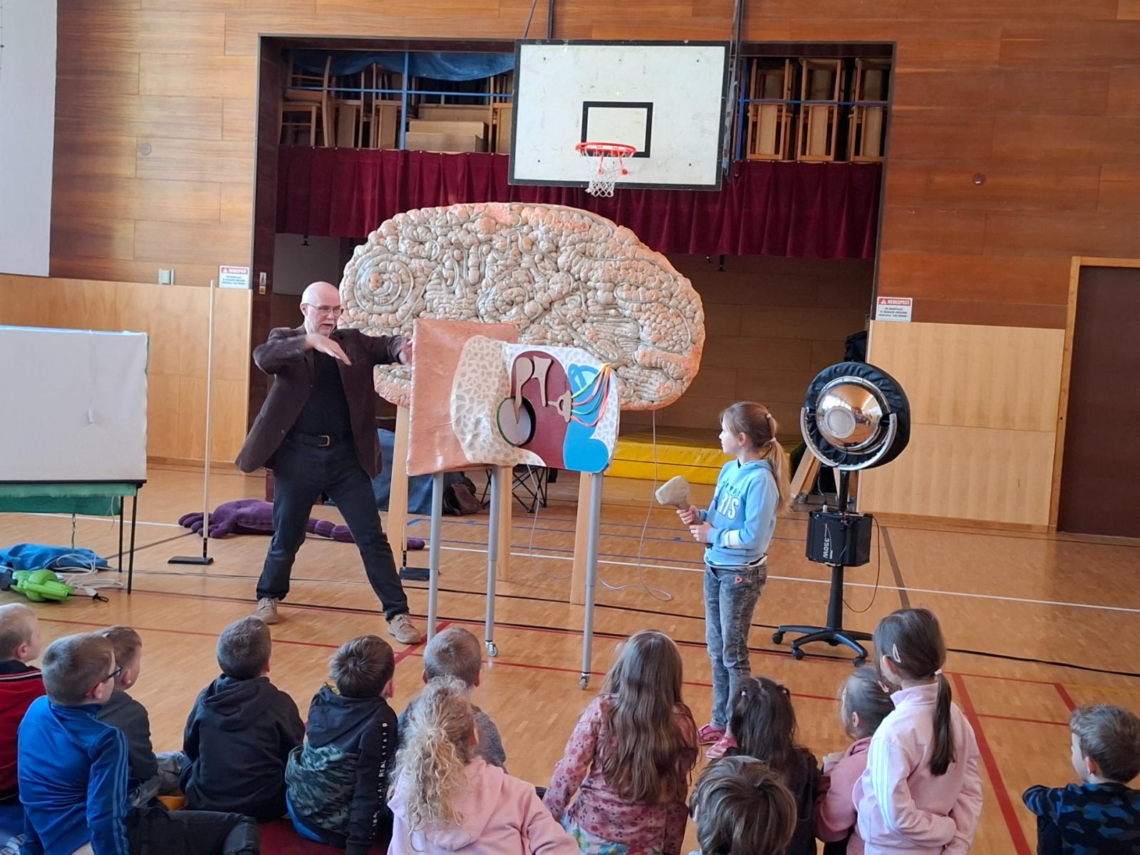 V úterý po Velikonocích byl pro nás připravený vzdělávací pořad "Používám mozek". Pan lektor Zezula nám poutavou formou přiblížil, jak pracuje a funguje náš mozek a smysly. Také nám vysvětlil, co můžeme udělat pro to, aby se nám lépe učilo a více jsme si pamatovali.