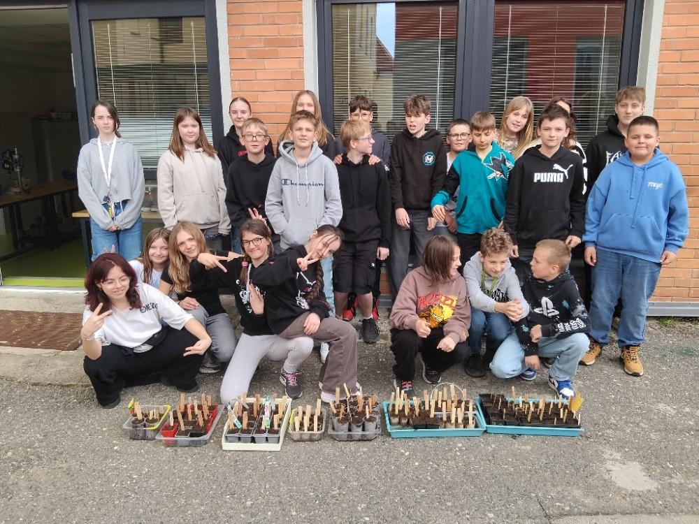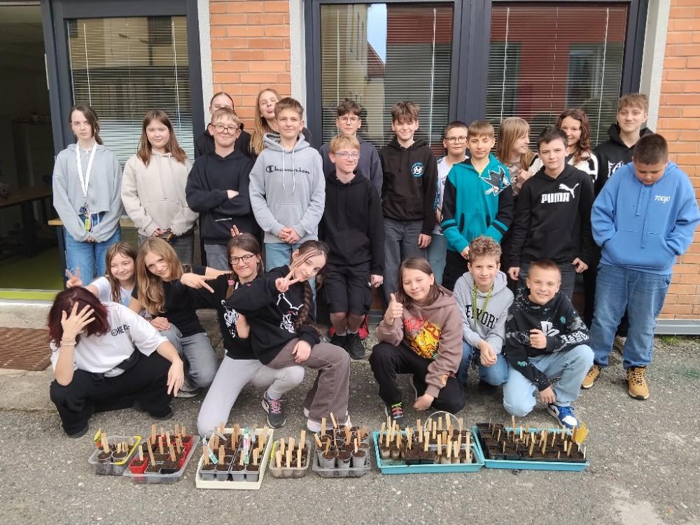 Sázení rajčat v pracovních činnostech s panem učitelem Schneiderem