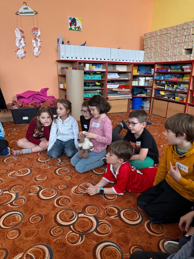 Do školní družiny zavítala paní psycholožka, která si pro děti z první třídy připravila zábavný a poučný program na téma pomoci druhým. Pomocí situačních karet děti společně přemýšlely nad tím, co se na obrázcích asi odehrává a jak by se dala daná situace vyřešit. Učily se tak vnímat potřeby ostatních a hledat správná řešení.
