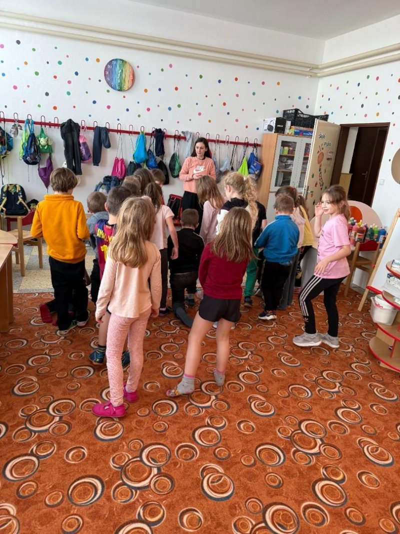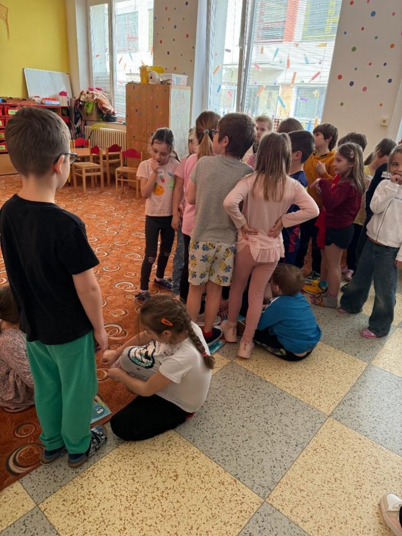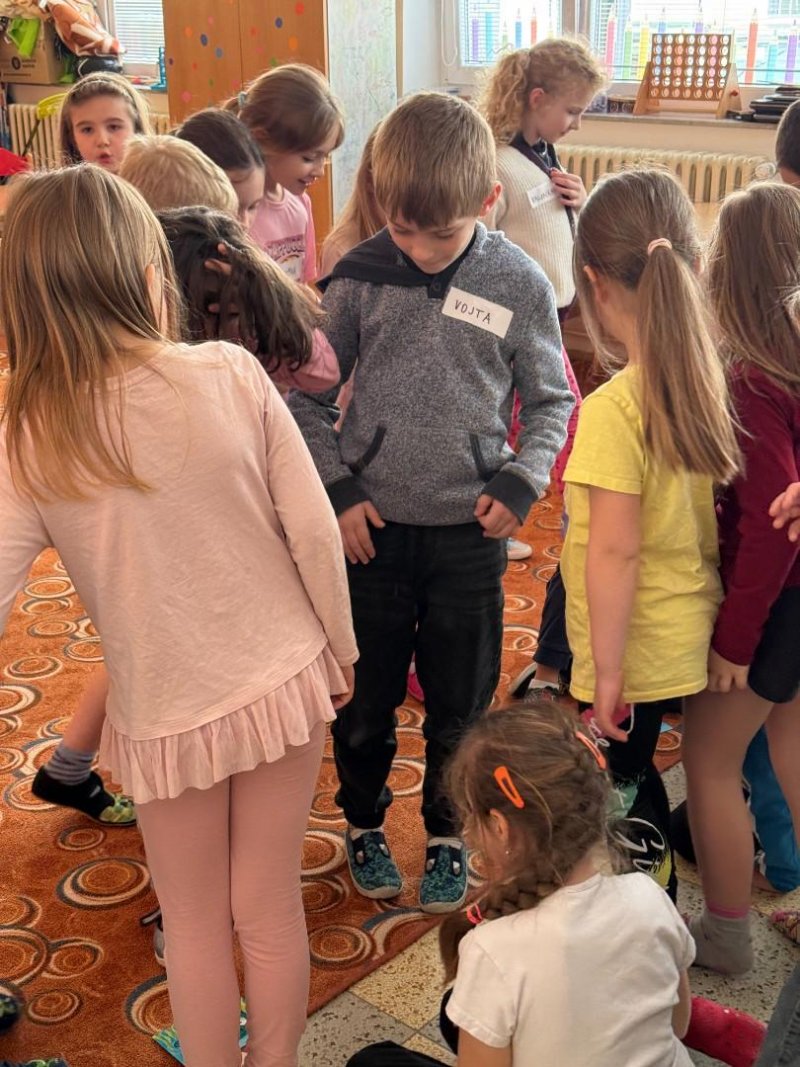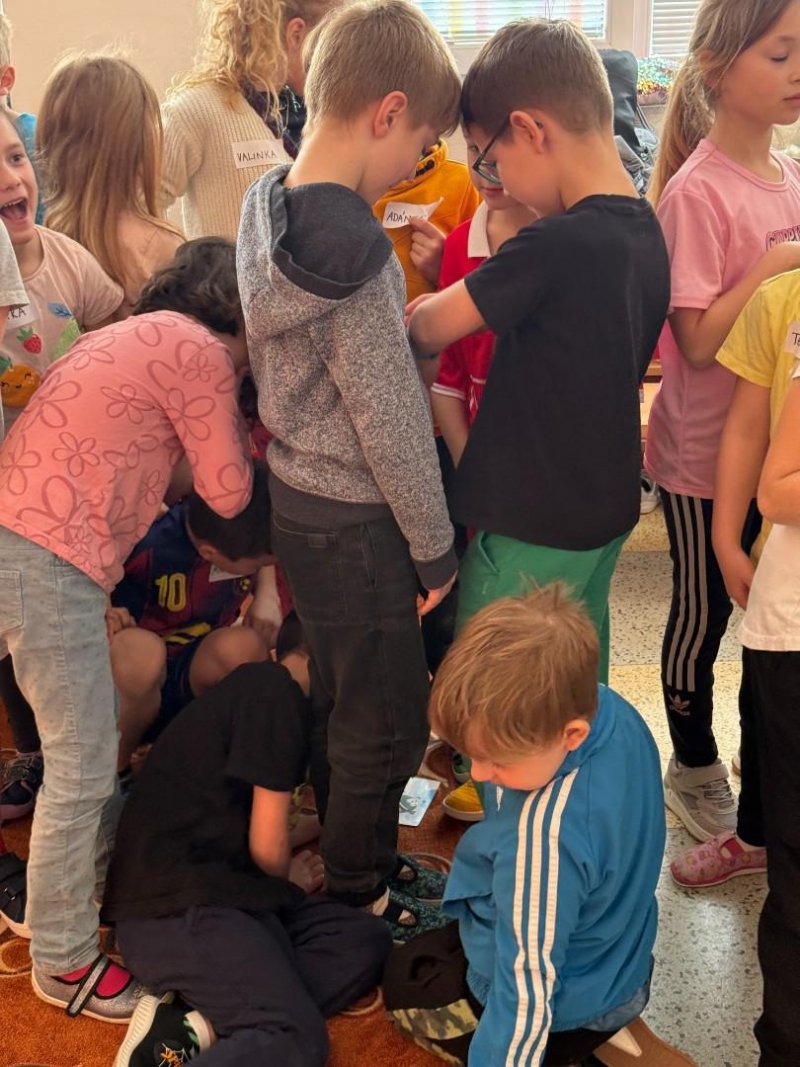 Na závěr byly děti rozděleny do skupin. Jejich úkolem bylo pomocí pantomimy předvést scénku odpovídající obrázku. Následně ostatní hádali, o jakou situaci se jedná. Aktivita byla nejen zábavná, ale také rozvíjela spolupráci, empatii a komunikační dovednosti.