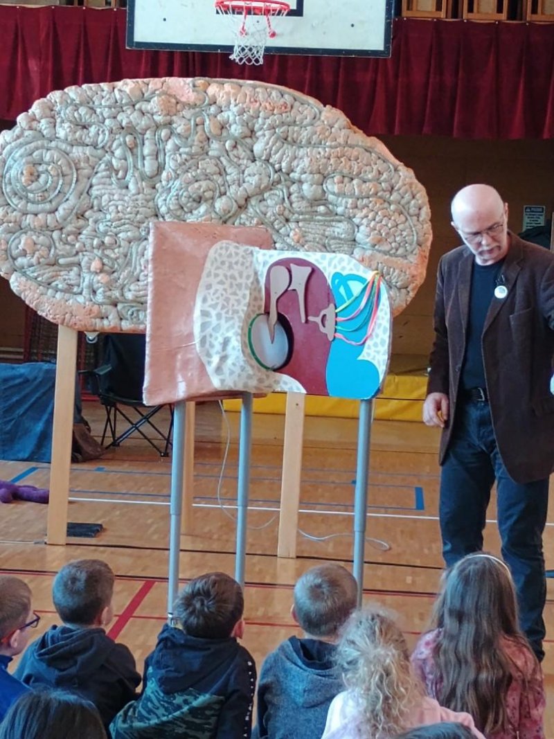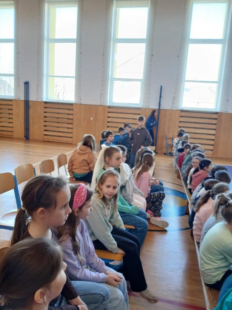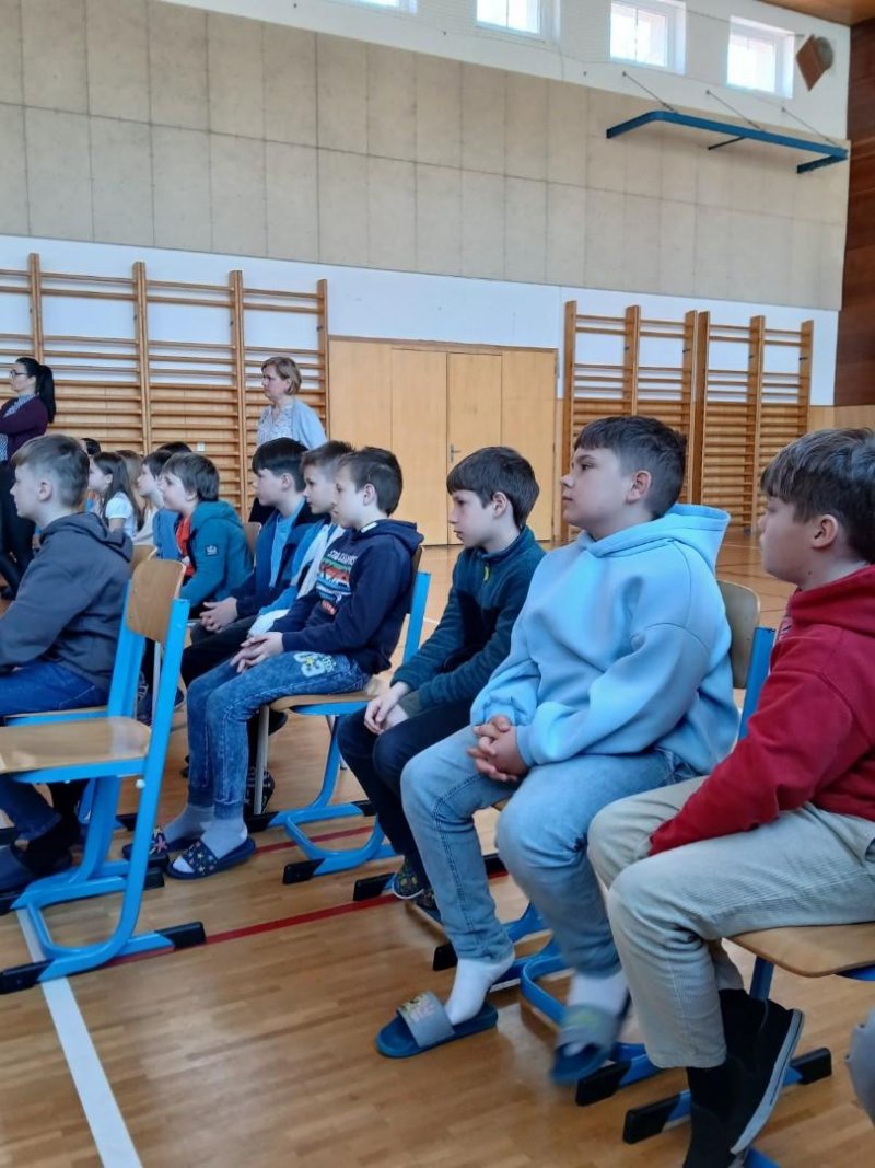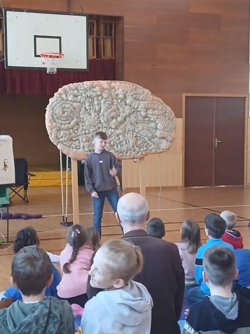 V dubnu jsme zhlédli v tělocvičně program Používám mozek, kde jsme se dozvěděli, jak funguje mozek a jak je dobré se učit, abychom si učivo zapamatovali.